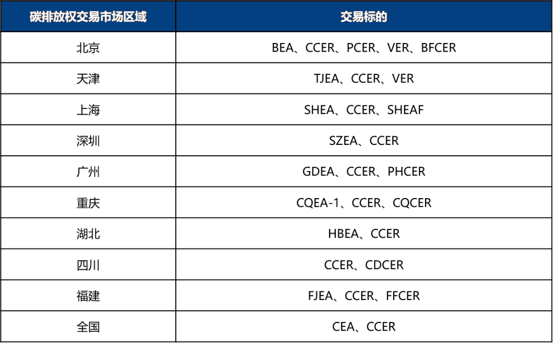值得一提的是,随着碳交易的不断发展,除了CEA和CCER外,我国部分地区碳排放交易市场还可以交易相应地区自行核证的自愿减排量。如北京林业碳汇抵消机制、广东碳普惠核证减排量等。